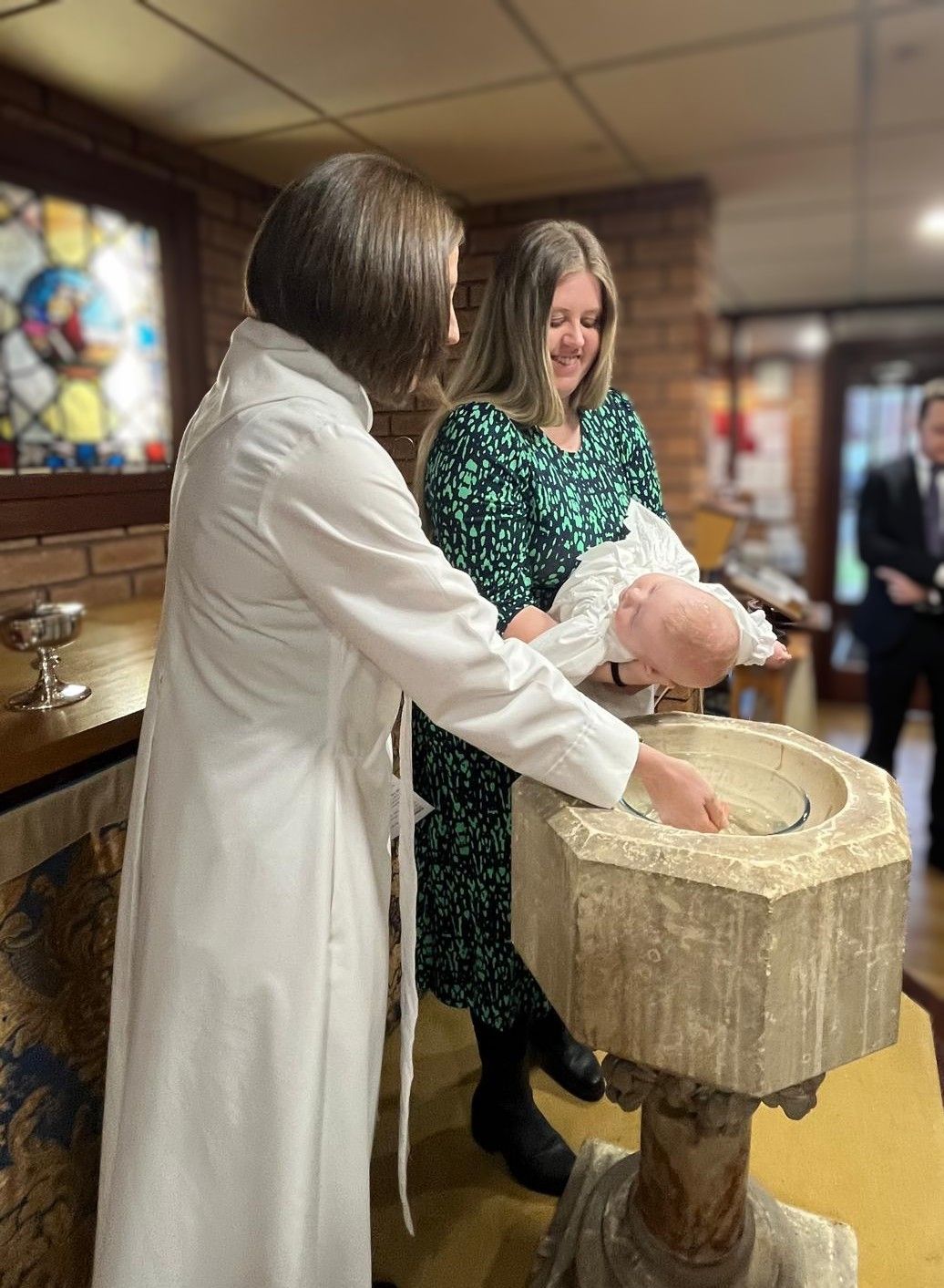 - The Preparation Session: Suzy will contact you to arrange a relaxed, interactive session (approx. 1 hour) in the church. Together, you will explore what baptism is about, see the font, and plan the service. Please come to this session with a few date options in mind and a rough idea of guest numbers.