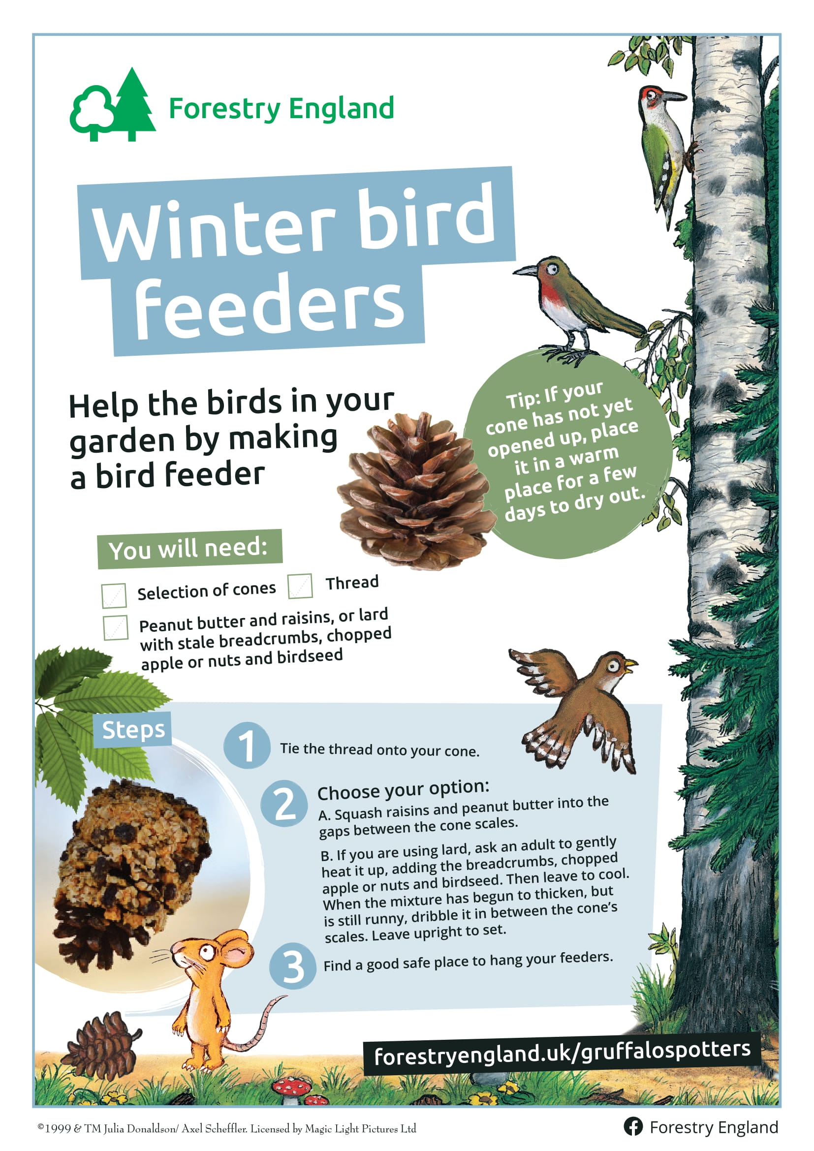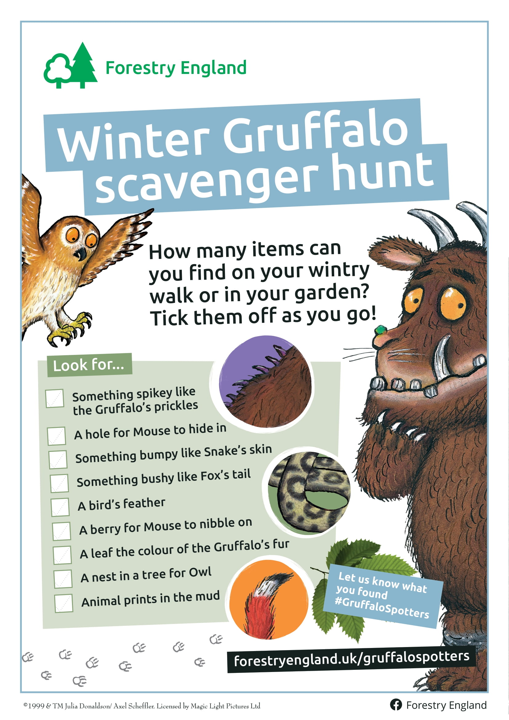 Forestry England have also suggested some low cost ideas to help children and families make the most of their time in nature https://www.forestryengland.uk/blog/10-low-cost-family-fun-ideas-winter, including trying map reading and orienteering, or getting into wildlife photography (many of our phones have very good quality cameras). They have also developed some Gruffalo themed activity sheets which are free to download and include this scavenger hunt.
